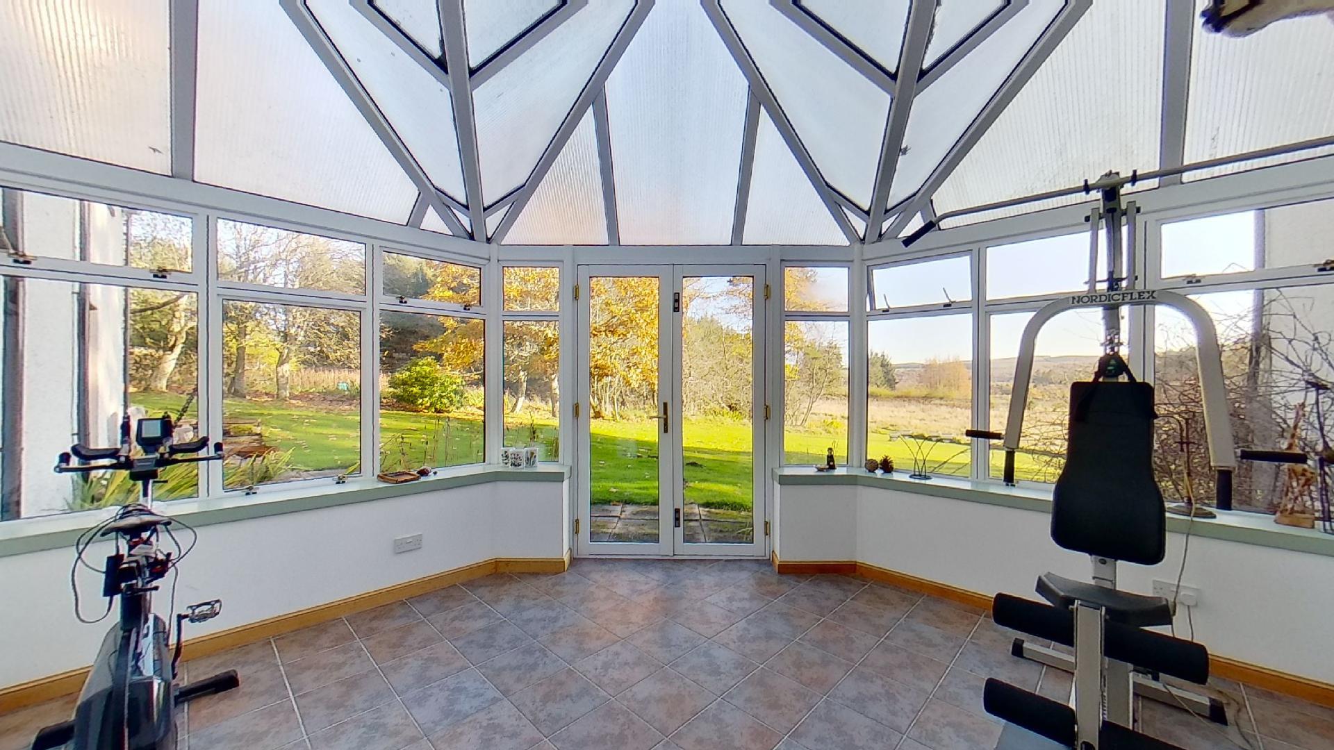 The spacious 5-bedroom home, extended from the original stone cottage, sits in an elevated position in the centre of the property with established lines of trees radiating out from the house to create large, sheltered paddocks in all directions. The views from the house are stunning at all times of year, with lush greenery in the spring and stunning changes of colour in the autumn, a picture from every window. Wildlife abounds with deer, pheasants, red squirrels, pine martens, badgers, hawks and a multitude of birds making their home in this secluded, tranquil environment. With four reception areas, the house has been designed to suit a large family or to accommodate entertaining.