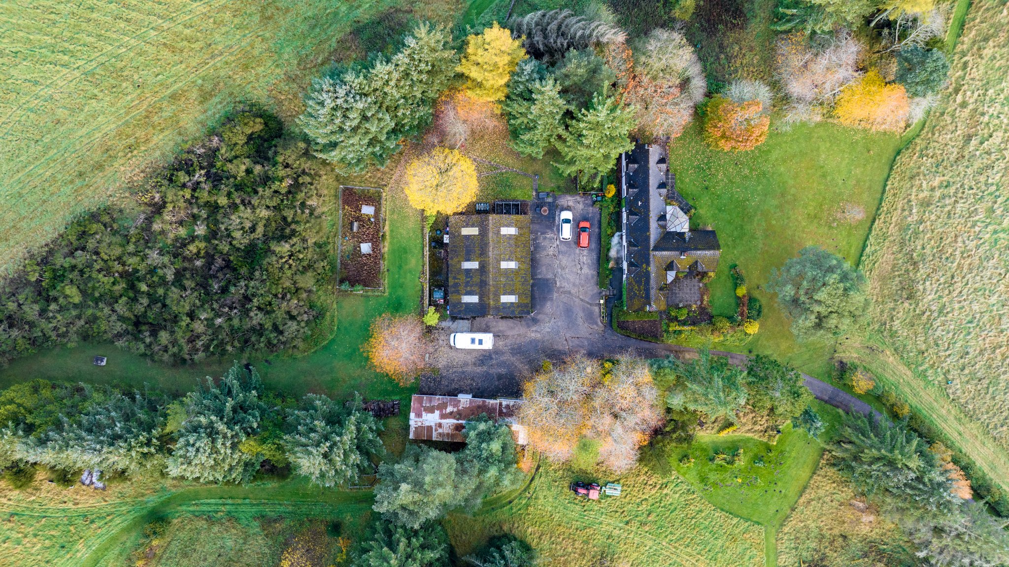 Two large outbuildings complete the picture.